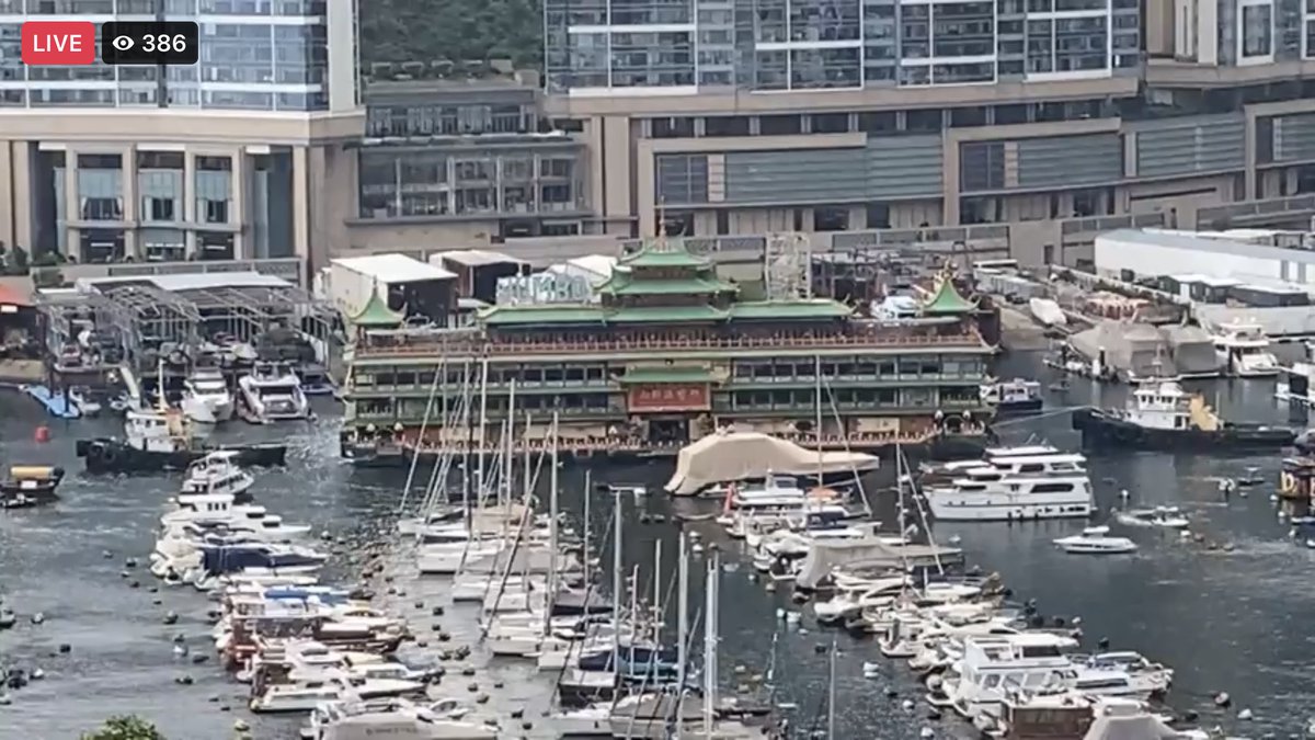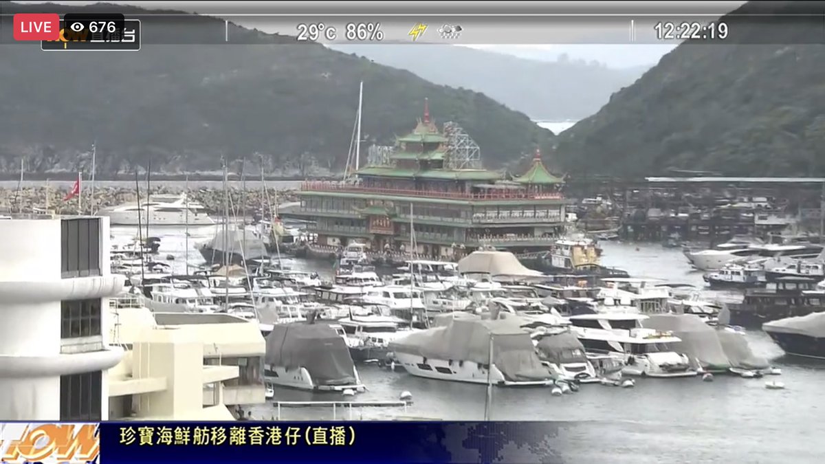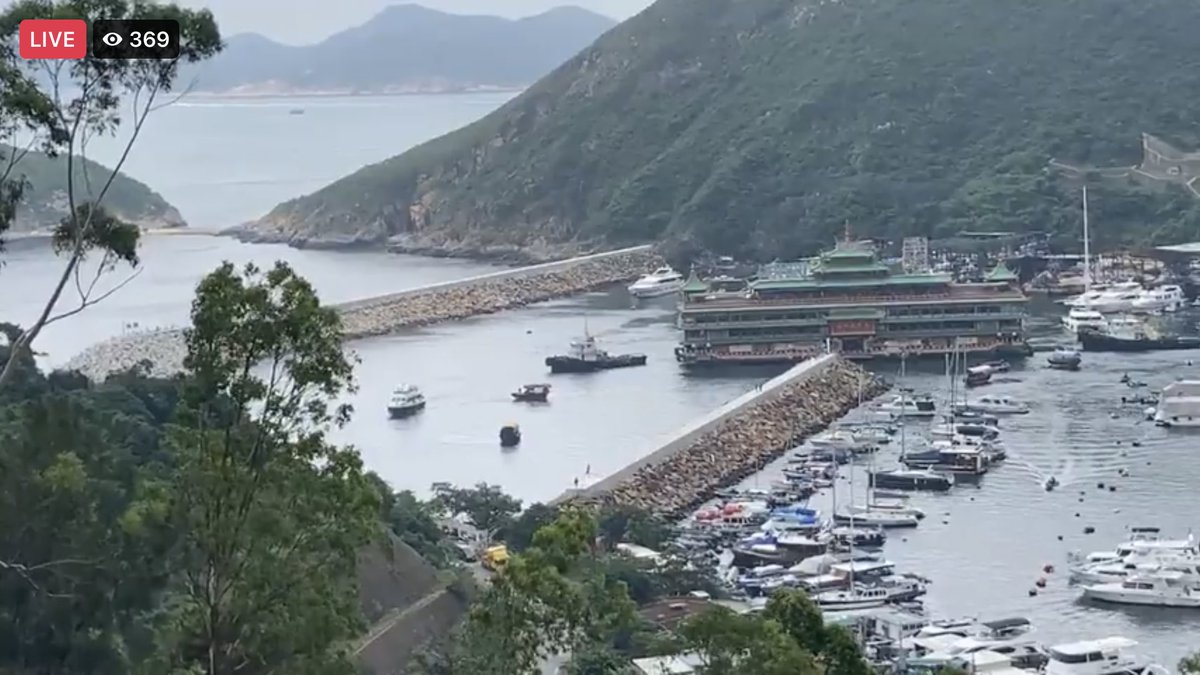 珍寶海鮮舫(ジャンボレストラン)が香港を離れていくところ生中継している!