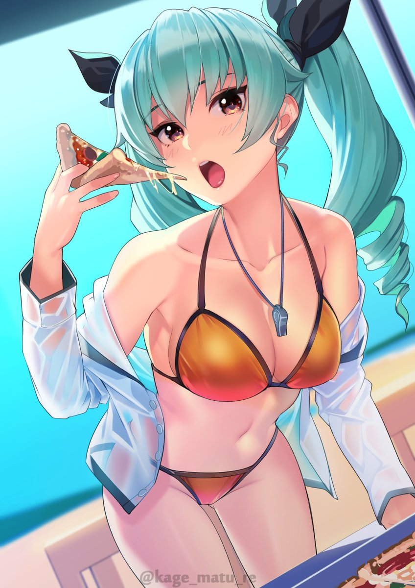 安斎が、昼食のピザを食べるとこ見て。