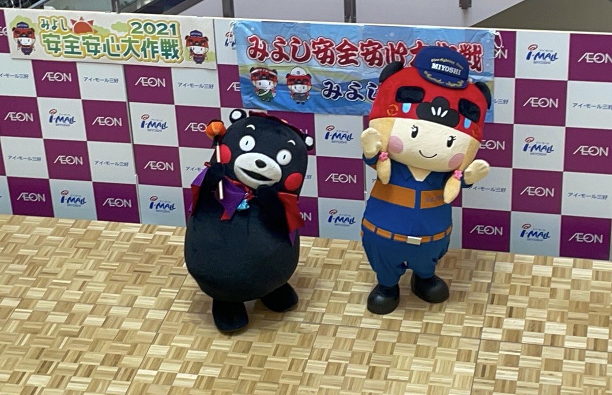 愛知県で開催された「みよし市安全安心大作戦」に行ってきたモン!みよし市と熊本県の益城町は災害時における相互応援協定を結んでるんだモン!知ってたかモン?みよ獅子ちゃんとも仲良くなれて嬉しかったモン☆