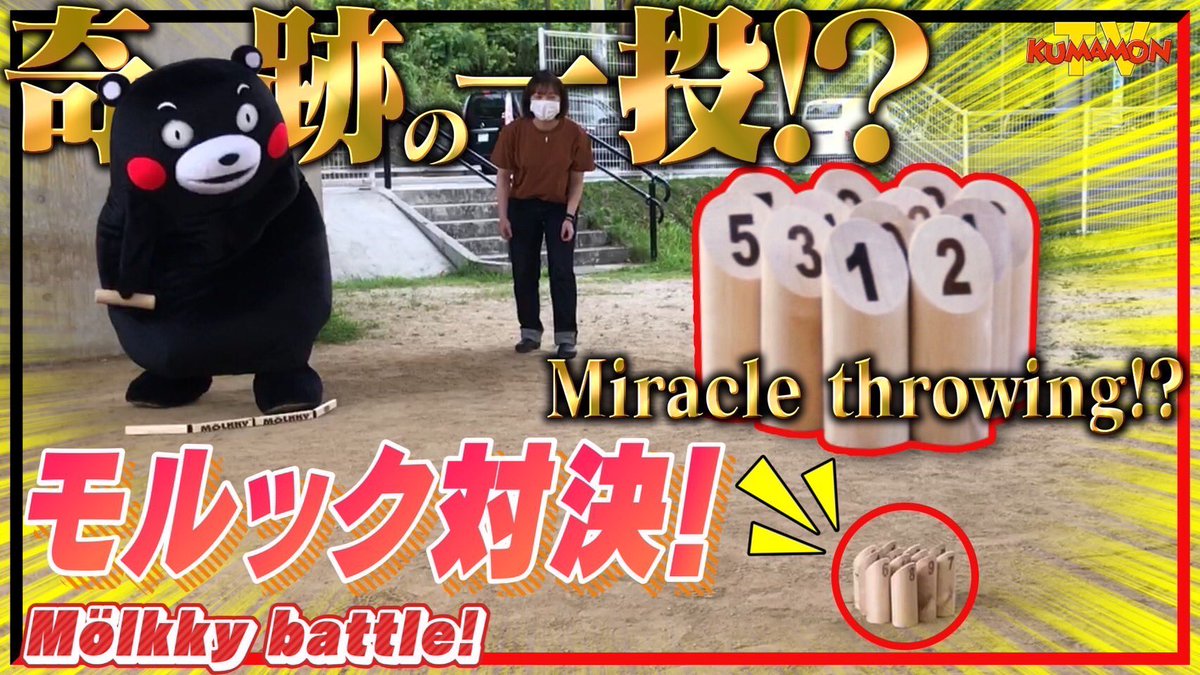 【お知らせ】くまモンTV #148 「くまモン、投げる!奇跡の一投!モルック対決!! 」が配信されたモン! 木の棒を上手に倒していくフィンランド生まれのスポーツだモン!なかなかコントロールがむずかしかったモン・・・!対決の結果はこちらから要チェッくま〜☆youtu.be/Ij6pMnaGBuI