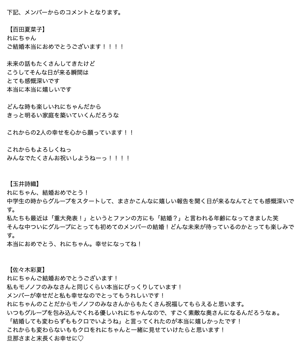 メンバーからのコメントとなります。