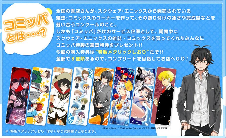 期間中にスクエニの雑誌・コミックスを購入された方に、 特製しおりをプレゼント!というキャンペーンです。