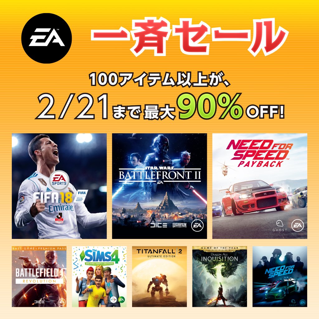 エレクトロニック・アーツの人気作品、総数100アイテム以上が期間限定で一斉セール‼️2/21まで最大90%OFF😱😱😱