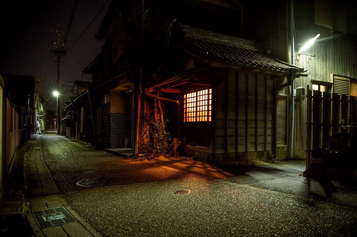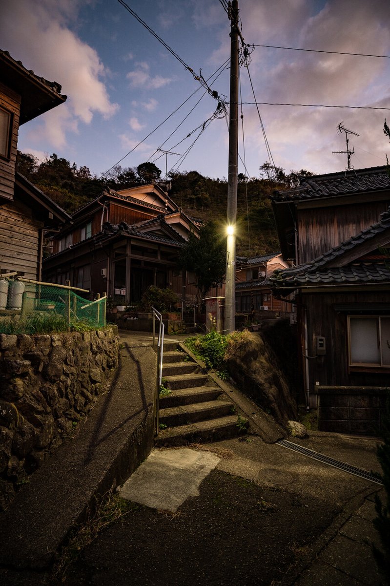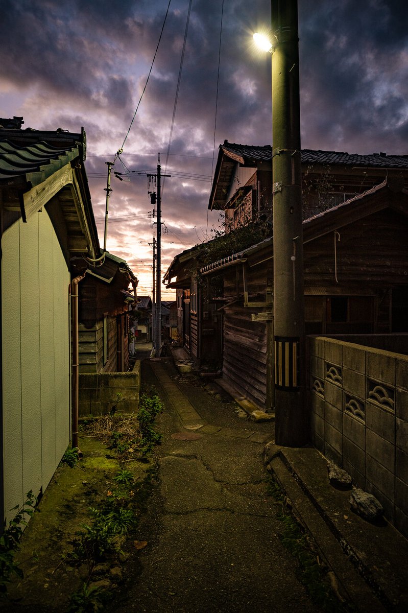 日没直後 ちょっと妖しげに色づく路地は わくわくしてしまうね。