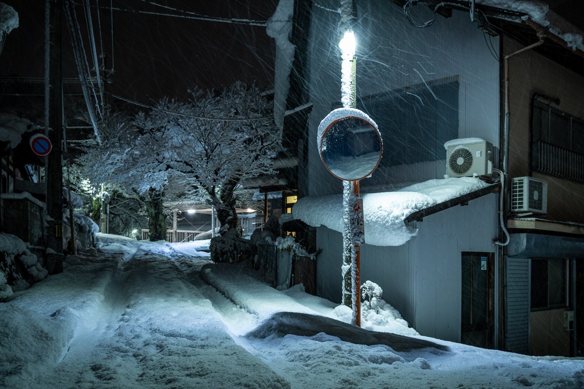カーブミラーは 雪夜にも仕事してて えらい。
