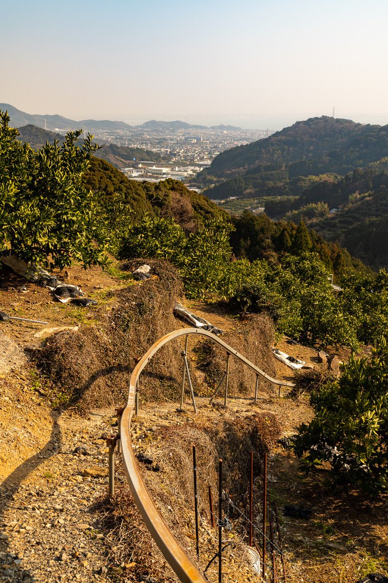みかん畑の斜面を 石垣縫うように走るレールは よくわからんが わくわくする。