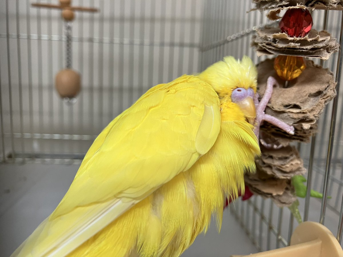 足が悪いので頭の羽根のサヤなどはスタッフがほぐすのですが、気持ちよさそうにカキカキさせてくれるのでついつい時間を忘れてしまいます😌