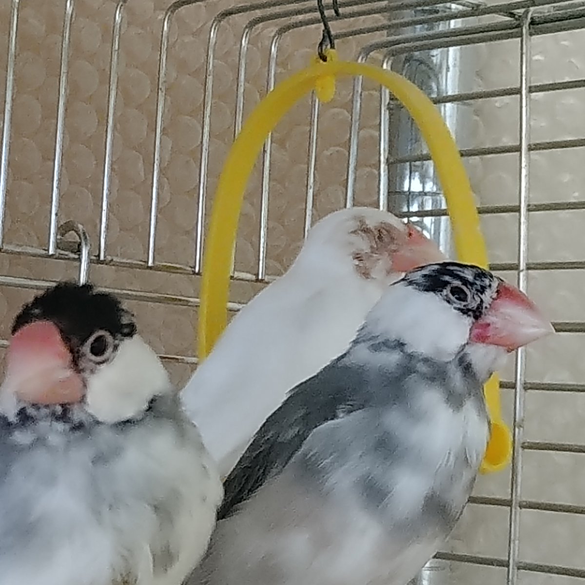 お気に入りのおもちゃで遊ぶレスキュー文鳥たちです!