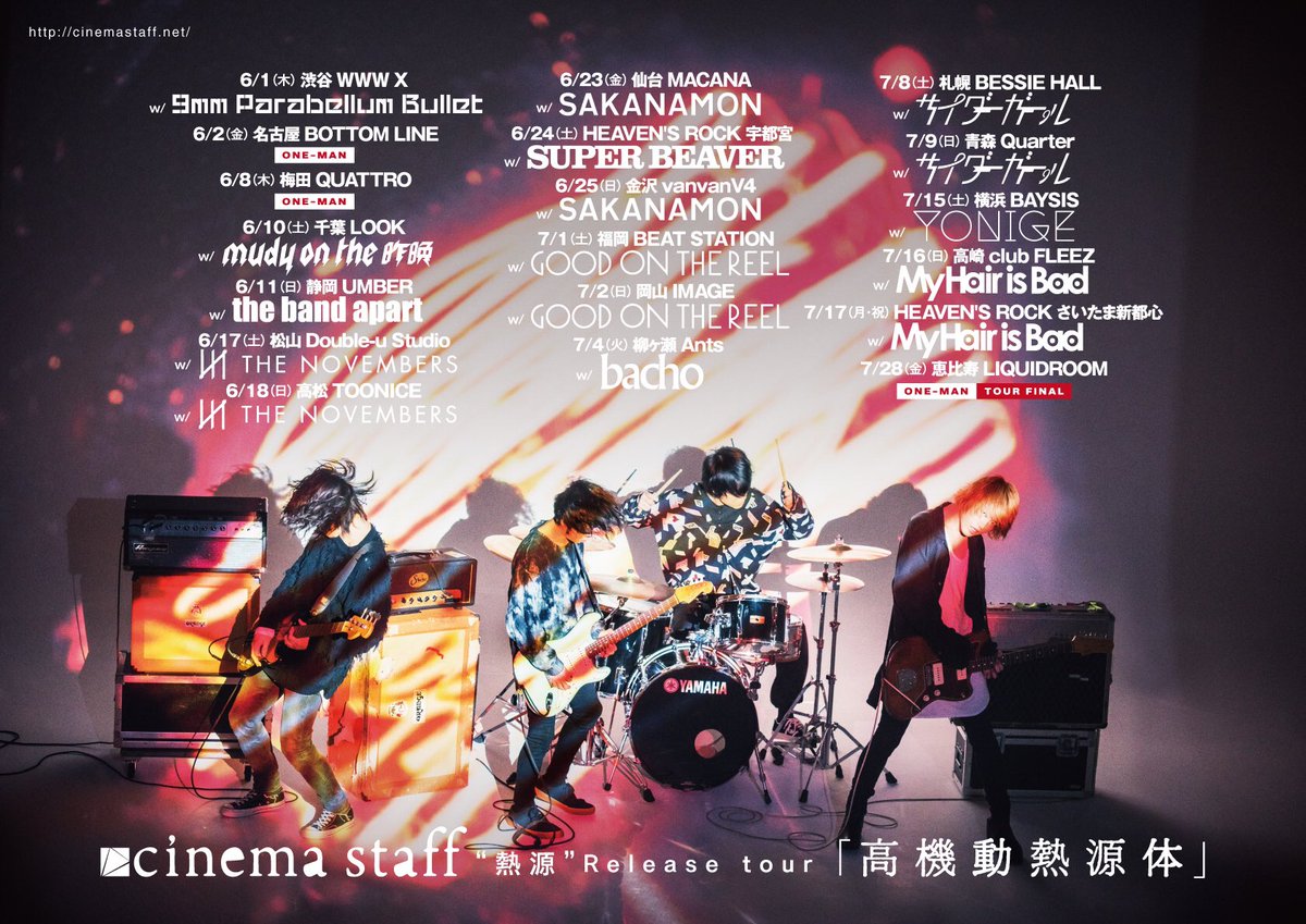 6/1(木)渋谷 WWW X "cinema staff『熱源』Release tour『高機動熱源体』"出演決定!