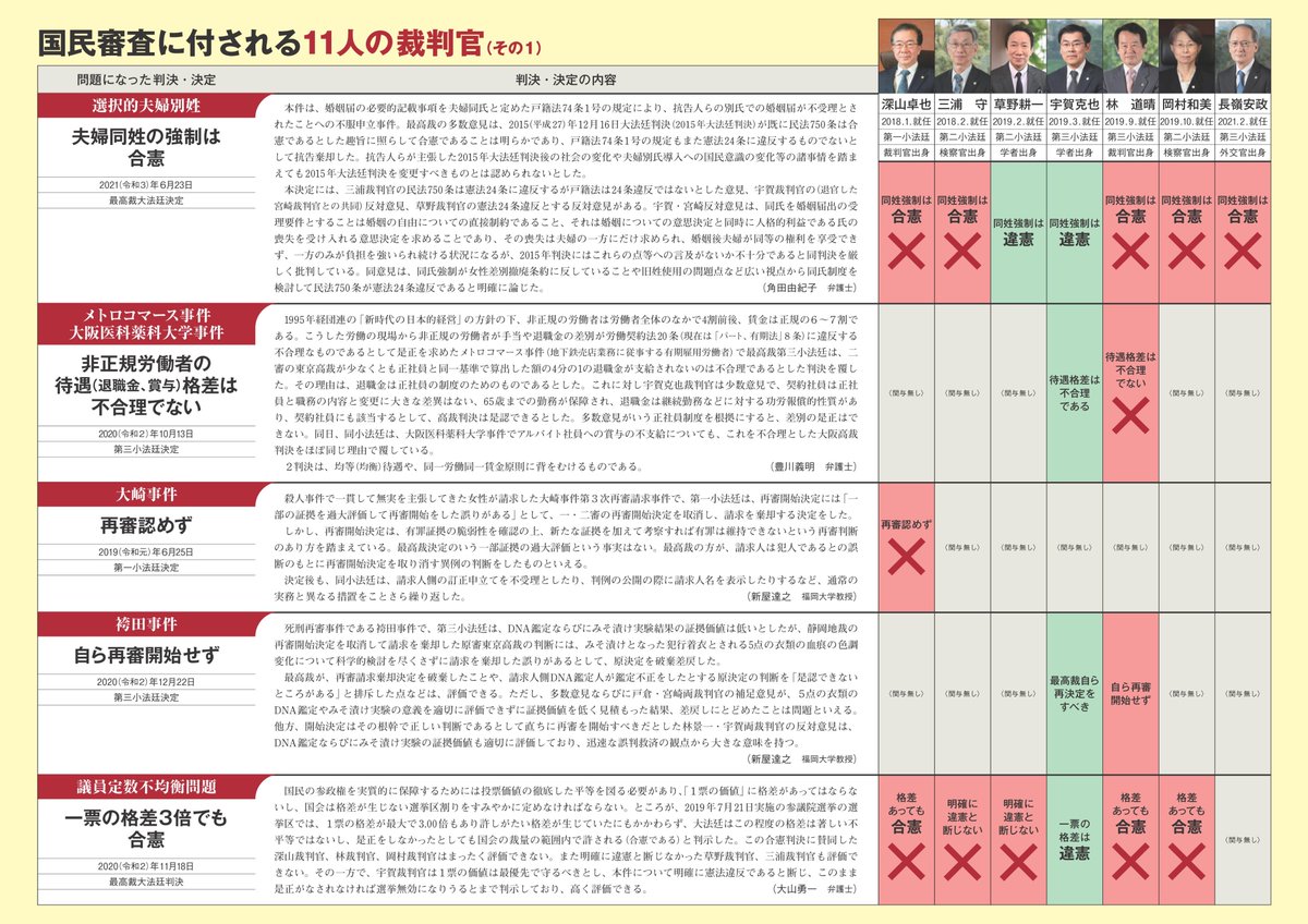 最高裁国民審査についての日民協のリーフ、分かりやすいです。 twitter.com/nichiminkyo/st…