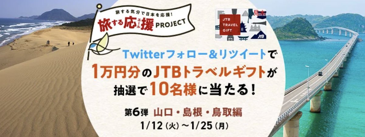 \ ふるさと応援ツイートで「JTBトラベルギフト3万円分」が10名様に当たる/