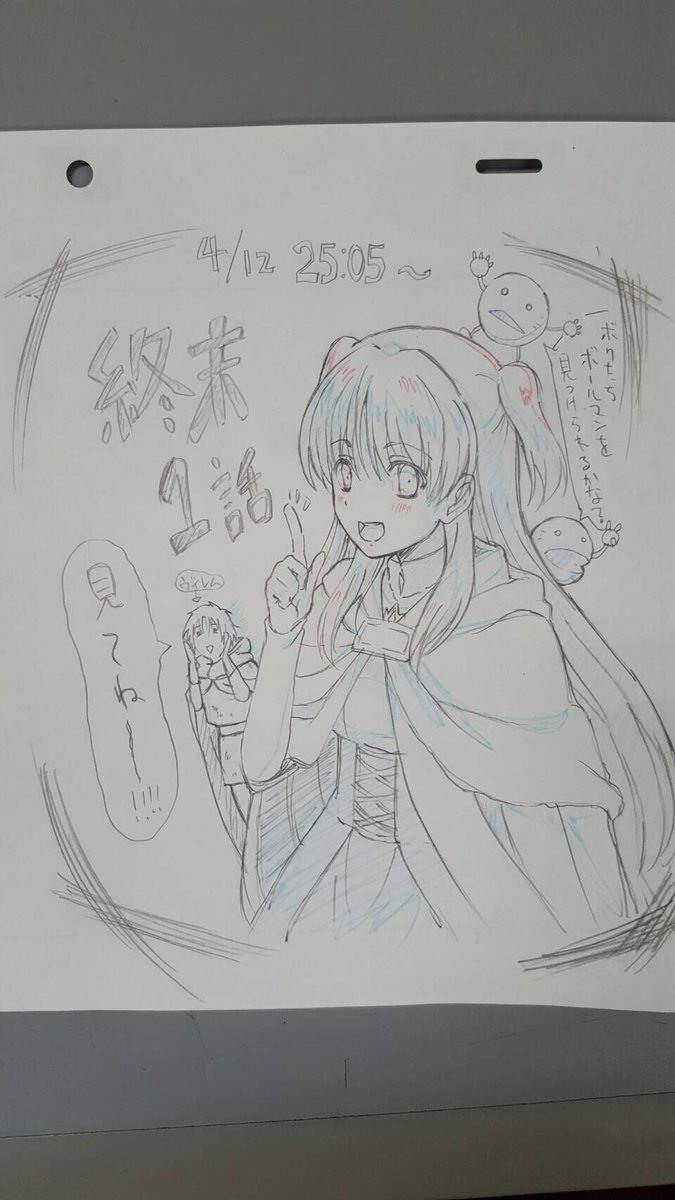 もうそろそろ、12話放送ですね!! ドキドキしてきました。 ぜひ観てください! アニメーターの山田真也さんから応援イラスト戴きました!! 12話クトリですね! アニメでは、今日がラストです。 本編、お楽しみに! お忙しい中、ありがとうございます!