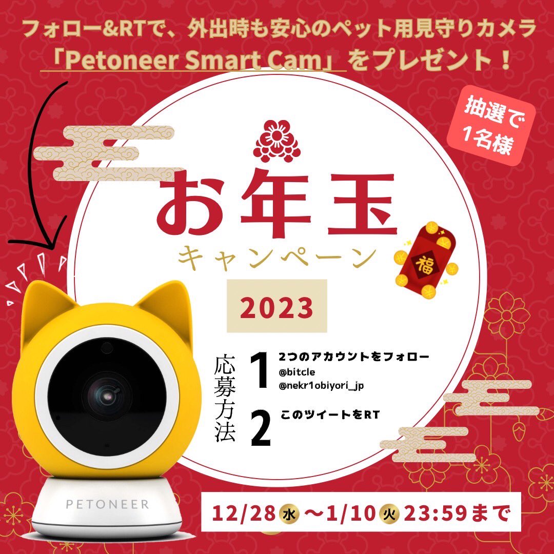 外出先でも安心のスマホ対応ペット用見守りカメラを1名様にプレゼント🐈