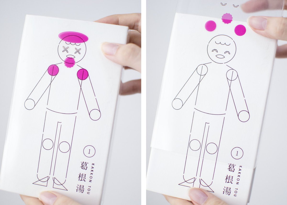 せっかく撮ったので卒制載せます↓ 【開けると笑顔になる漢方薬】 漢方薬をもっと手に取りやすく、 親しんでもらうことを目指した パッケージ。 スリーブ・袋を開けることで 症状がなくなって笑顔になれるということを表現。(😵→😄) また、人のイラストにより、 どこに効くかがパッと見でわかる。
