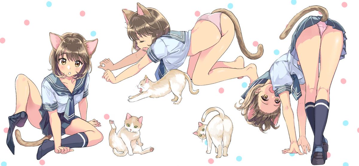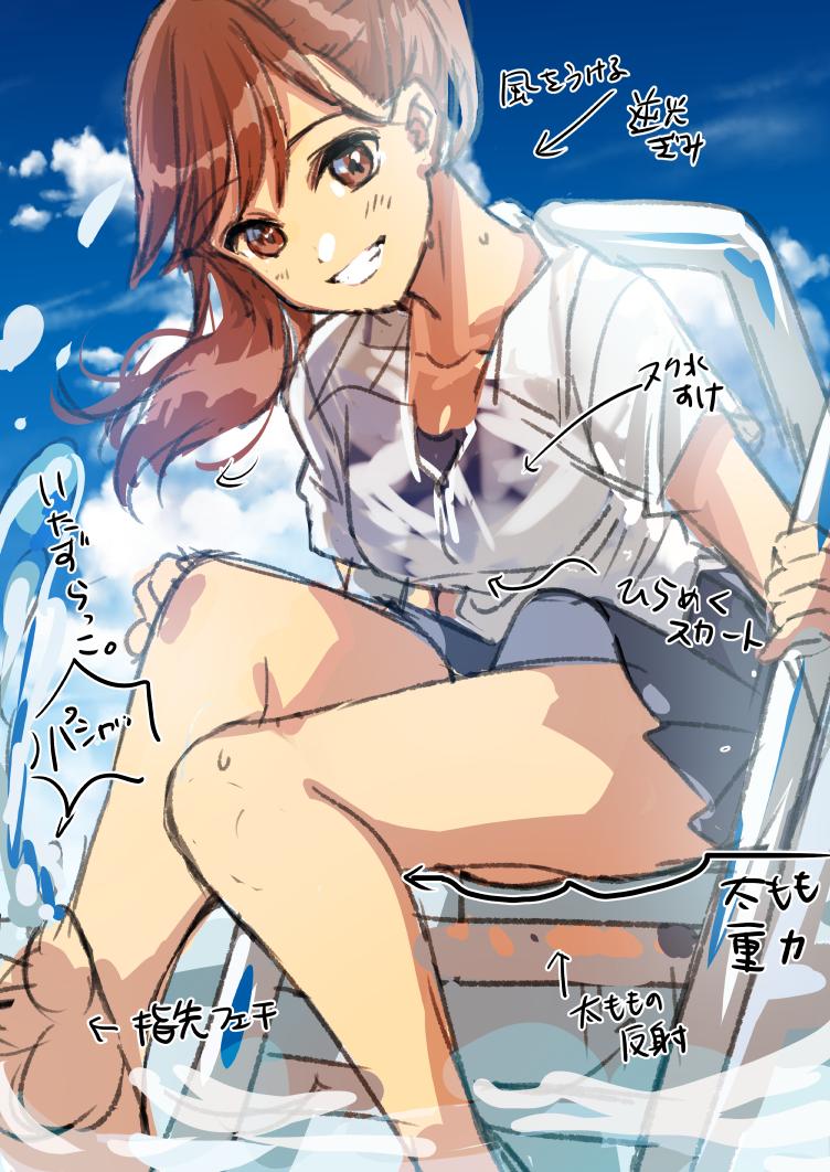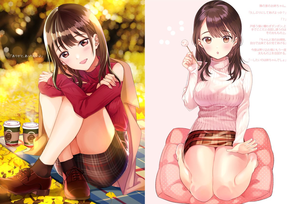 2010年のイラスト対比。制服、塗れ透け、ポニテ、ホース、まるめた靴下に素足、10年経って同じテーマで描いていたなんて気づかなかった😂