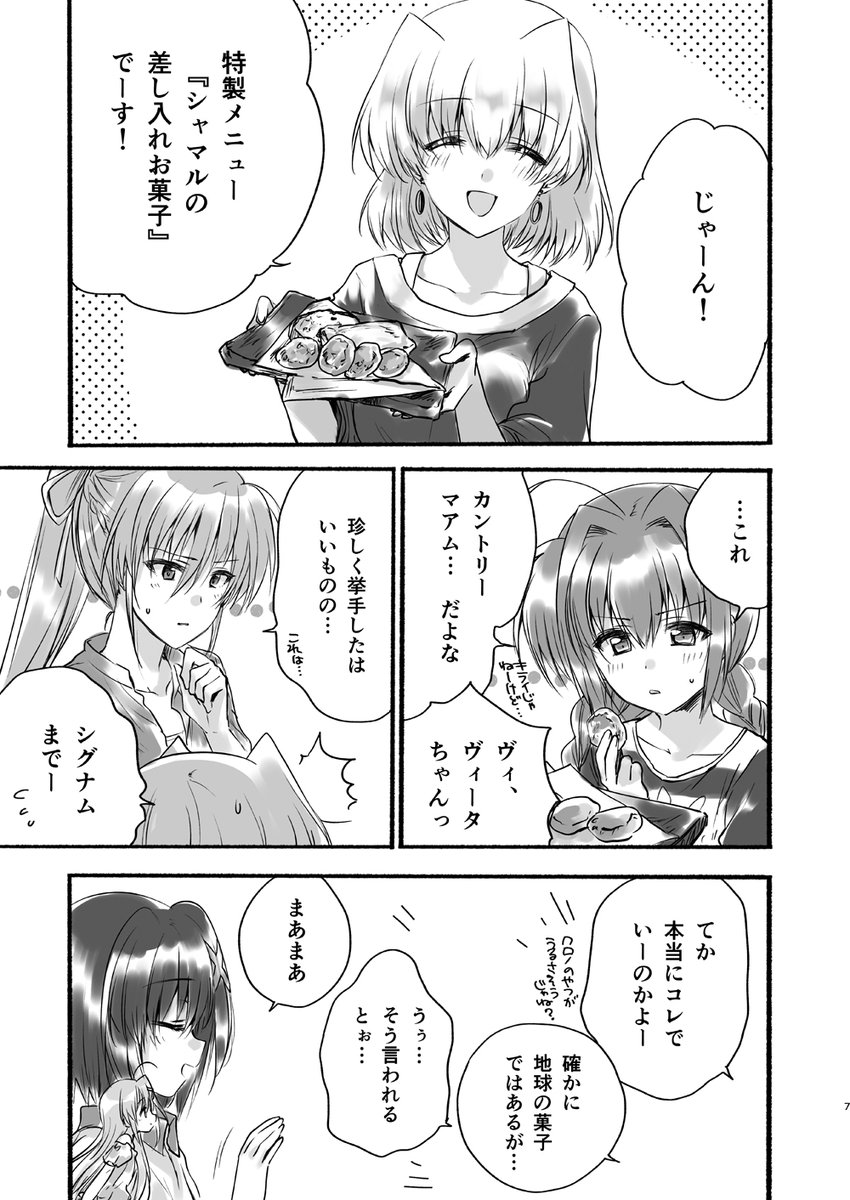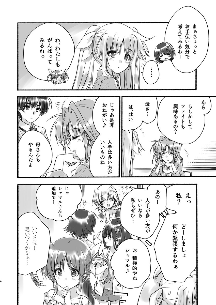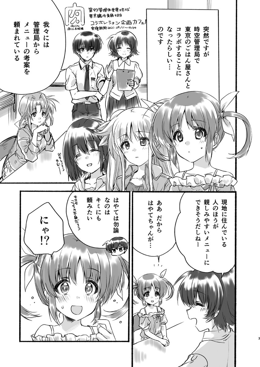 おいさ入稿出来た!(寝てた!)次の『リリマジ30』で今年の夏頃に秋葉原であった『なのは×肉バルコラボカフェ』漫画持っていきますのでよろしくお願いしますーこんな感じの↓