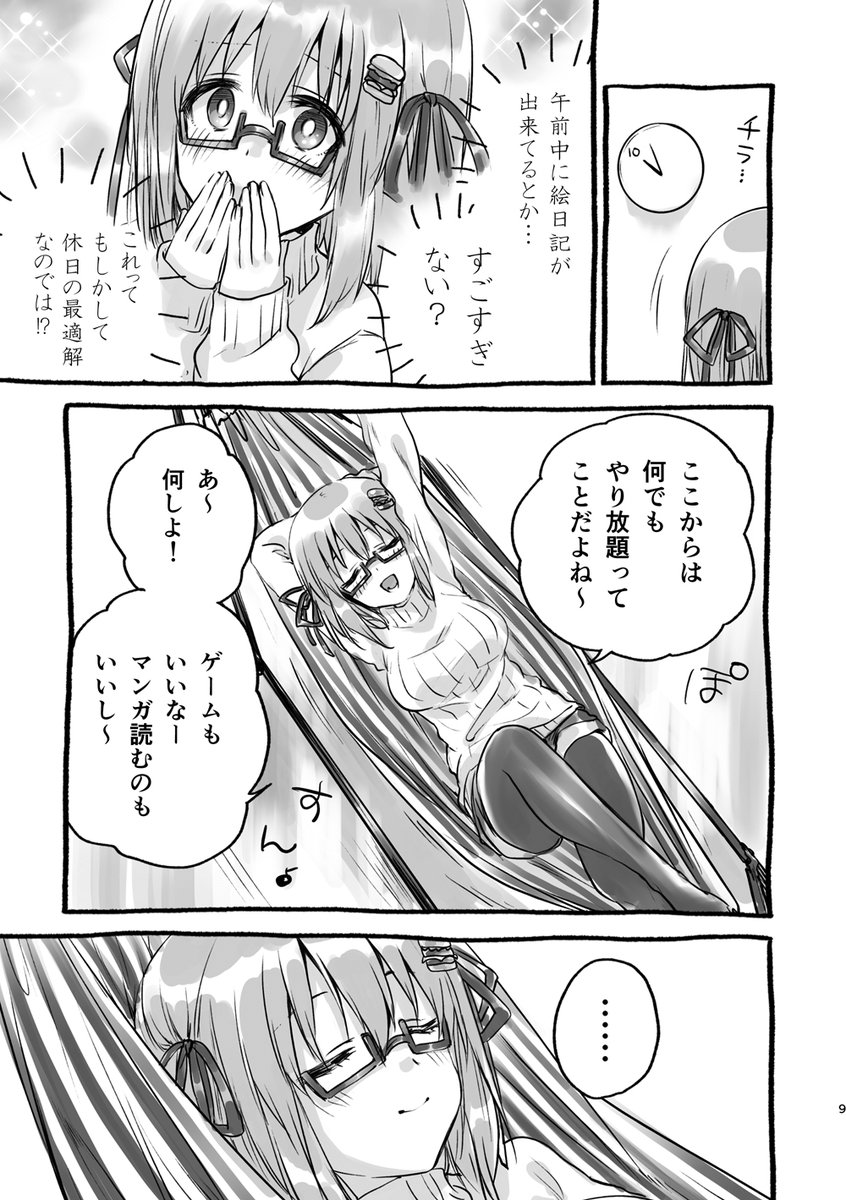 明々後日の新刊のハンバーガーちゃんのきゅうじつまんがのサンプルー