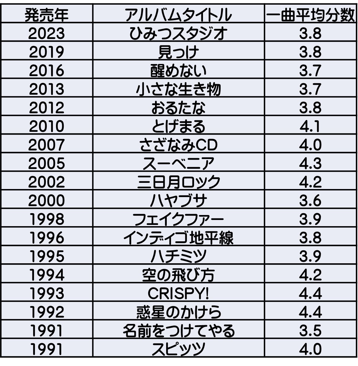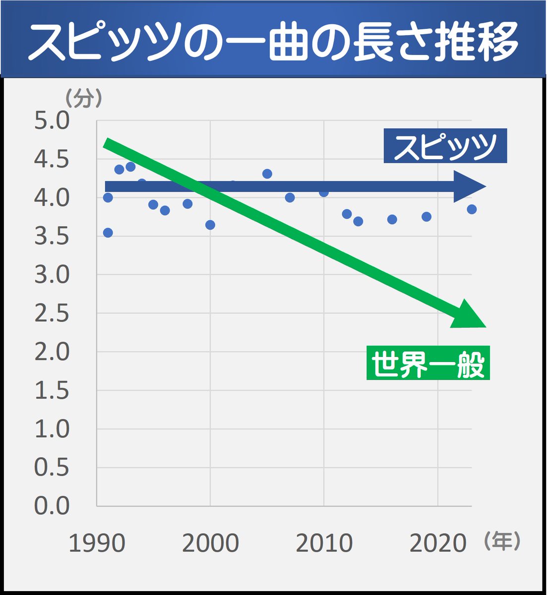 しかし #スピッツ はほとんど曲の長さに変化なし。