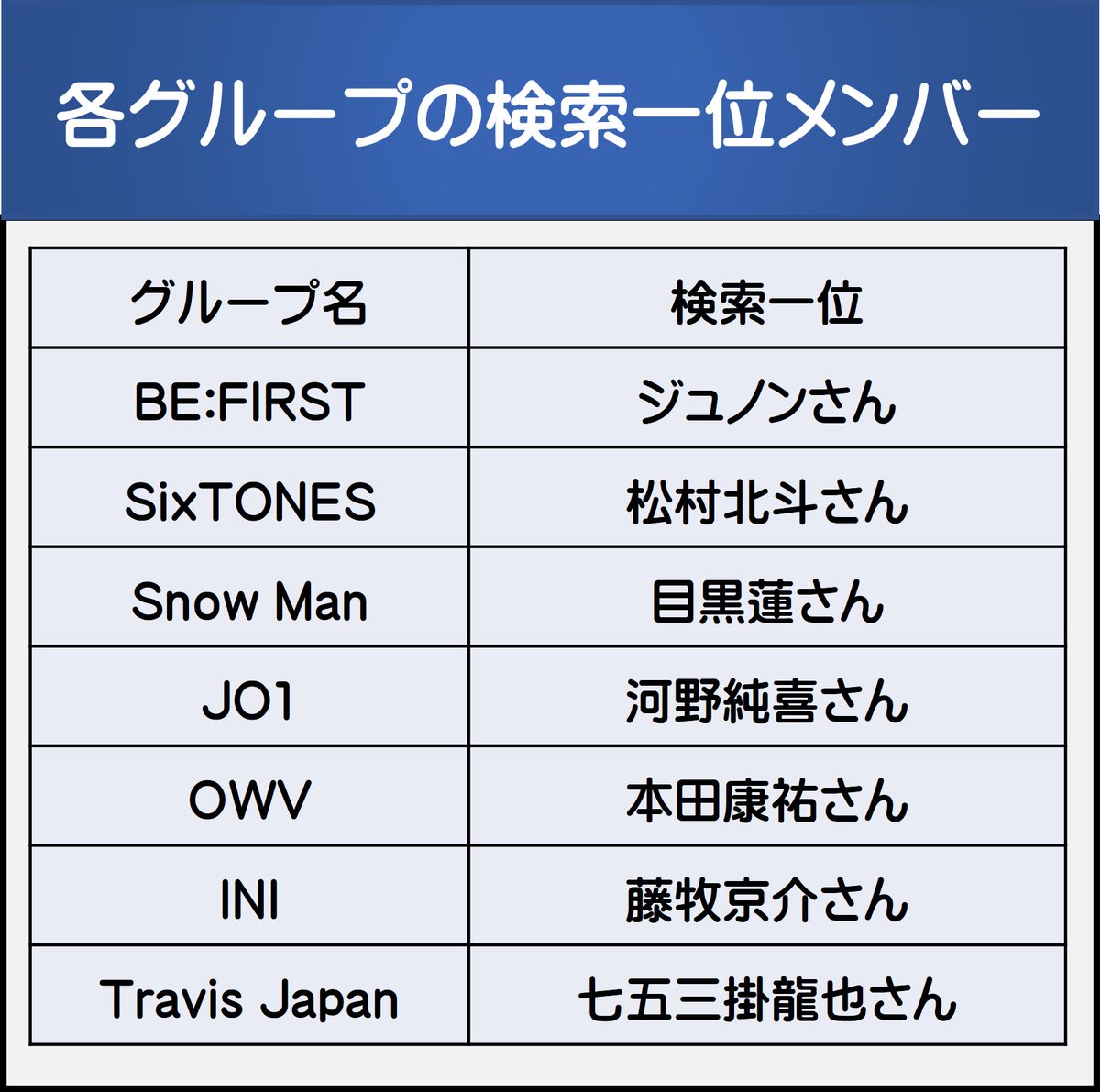 仕事に疲れたので、私が興味のあるグループの、Google検索1位のメンバーを調べました。… twitter.com/i/web/status/1…