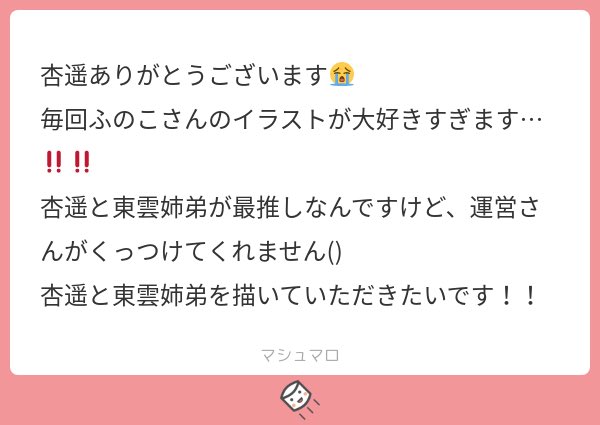 こちらこそイラスト見ていただけて嬉しいです、ありがとうございます🙏 内緒のお願いチーム私も好きで、生放送見てエーーーー!?ってなって描きました...幸せですね...
