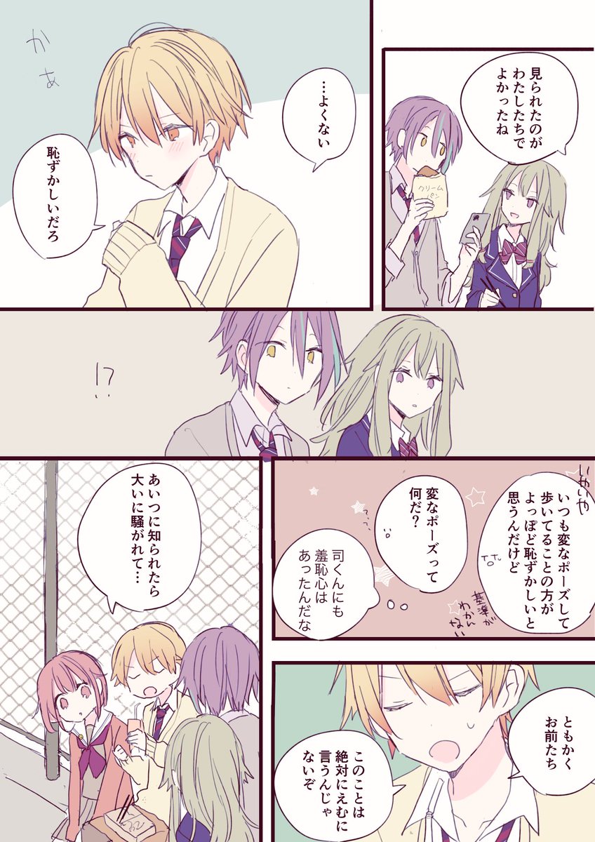 まとめてのお返事になってすみません💦なんか余計なこと言って杏と絵名に同時に殴られる彰人が見たい気持ちで描きました