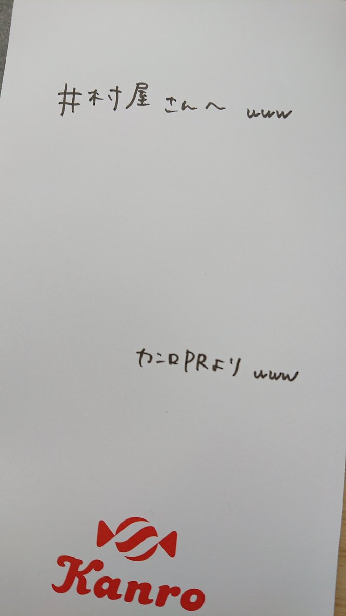 長いこと公式を担当していますので、贈ったり送ったり贈られたり送られたりって何度も経験しているのですけど、送り状の品名欄に「草生やした」企業様、カンロさん( @kanro_pr )が初めてです。心なしか中の文字もゆるんでる。ちょっと楽しそうなグミじゃないか。