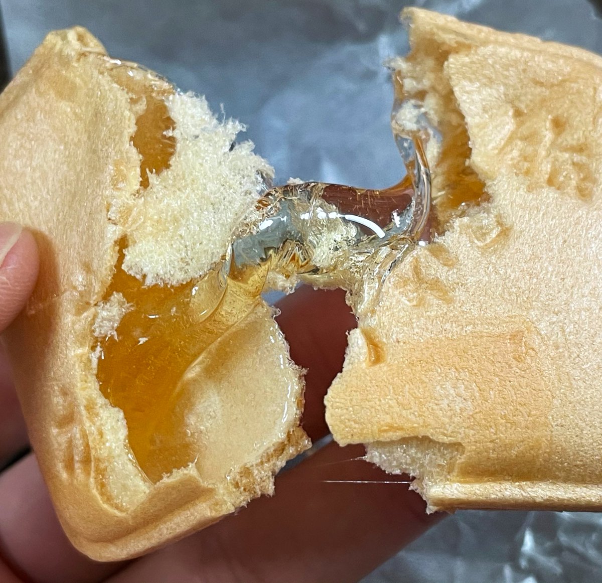 「甘いもの大丈夫?」と、新潟市の渡辺あめや「あめもなか」をいただきました。中身はなんだろうと思ったら、100%の水飴!すごいびっくりした!お茶受けに最高!