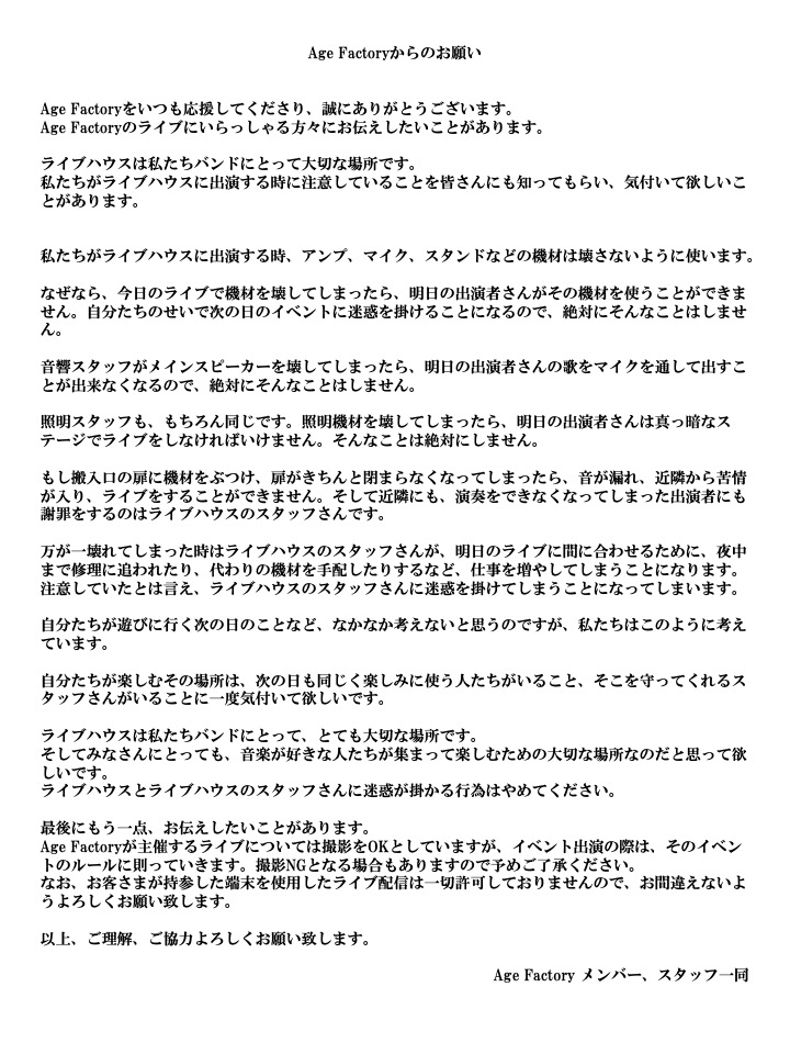 #AgeFactory SETLIST.