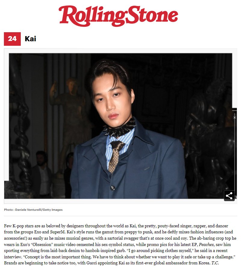 .@weareoneEXO Kai selected by Rolling Stone as 1 of the "25 Most Fashionable Musicians Right Now"