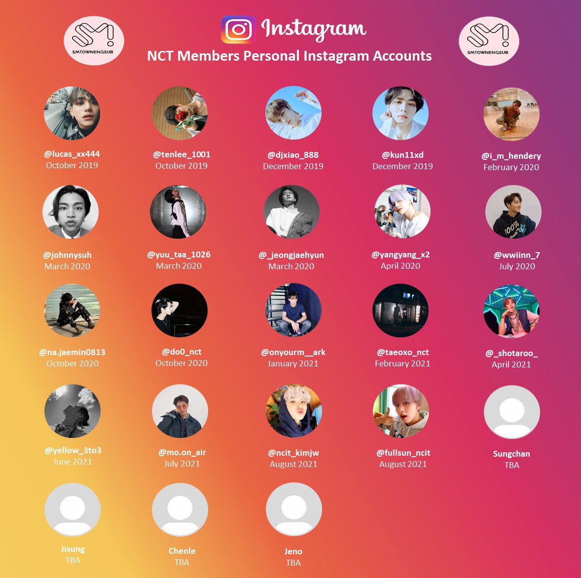 .@NCTsmtown Personal Instagram Accounts (83% Complete)