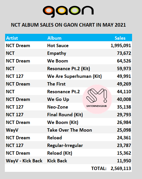 .@NCTsmtown sold 2,500,000+ albums on Gaon Chart in May 2021