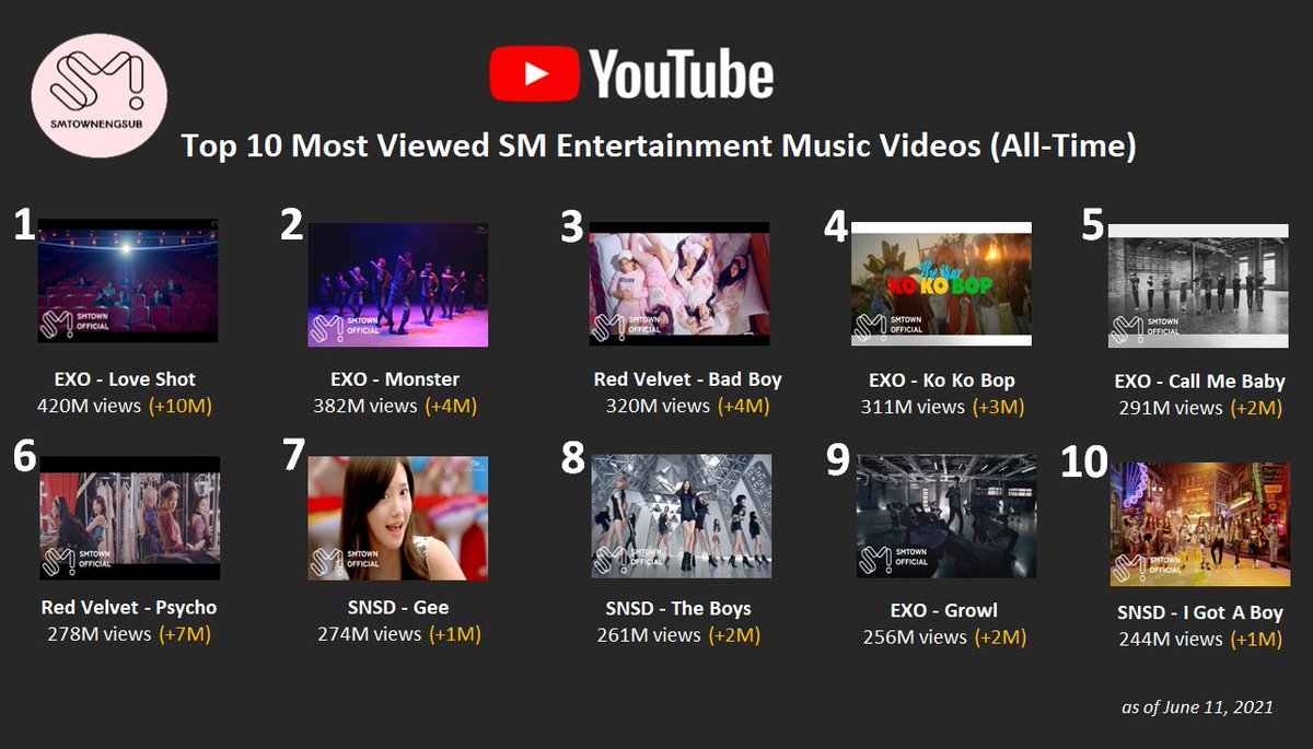 Top 10 Most Viewed SM Music Videos (All-Time)