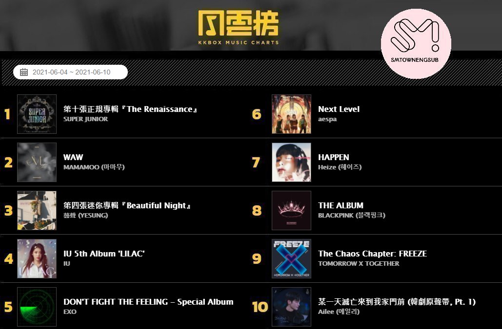 .@SJofficial ranks #1 on Taiwan KKBOX K-Pop Album Chart for 188 straight weeks: