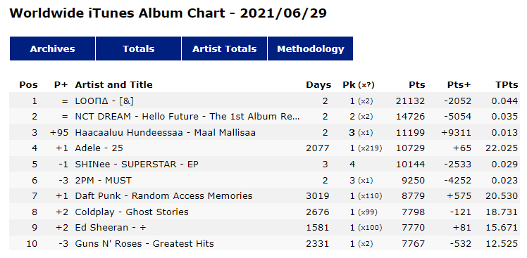 .@NCTsmtown_DREAM "Hello Future" remains at #2 today on Worldwide iTunes Album Chart (2 days on Top 10)