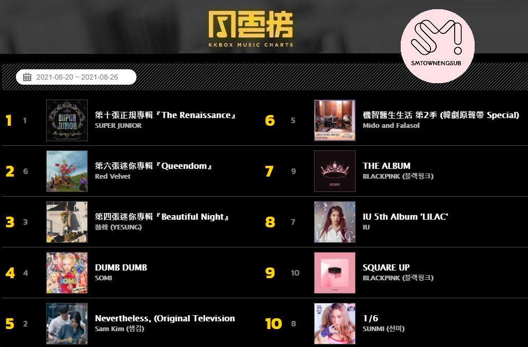 .@SJofficial ranks #1 on Taiwan KKBOX K-Pop Album Chart for 199 straight weeks: