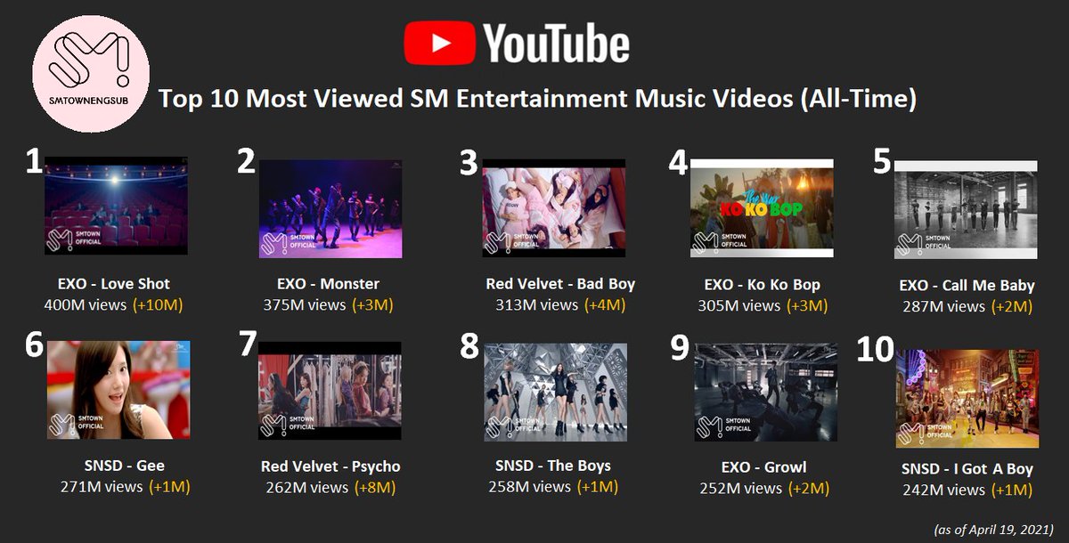 Top 10 Most Viewed SM Music Videos (All-Time)