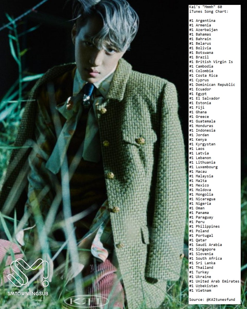 .@weareoneEXO Kai's "Mmmh" becomes the 1st SM song to hit 60 #1s on iTunes Song Chart