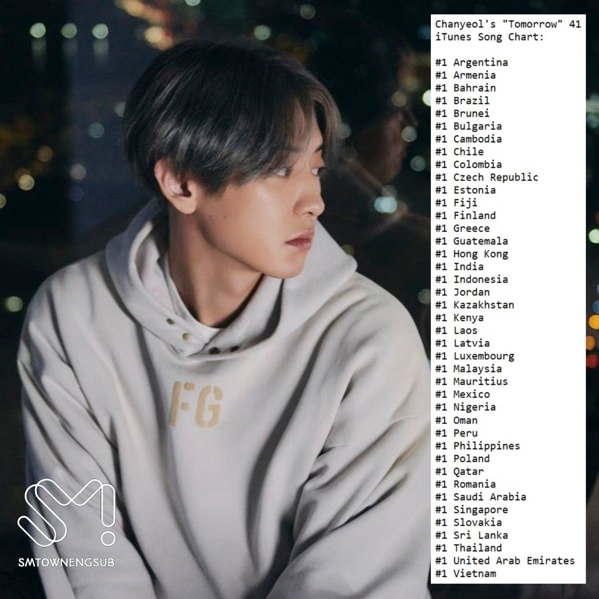 .@weareoneEXO Chanyeol's "Tomorrow" becomes the 1st SM STATION single to hit 40 #1s on iTunes Song Chart