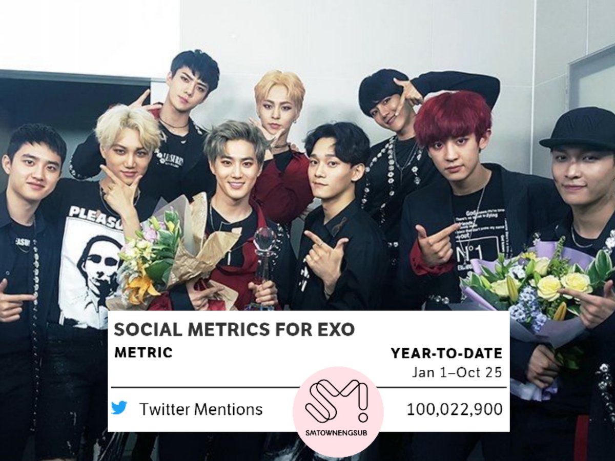.@weareoneEXO becomes the 1st SM artist to hit 100,000,000 Twitter mentions in 2021