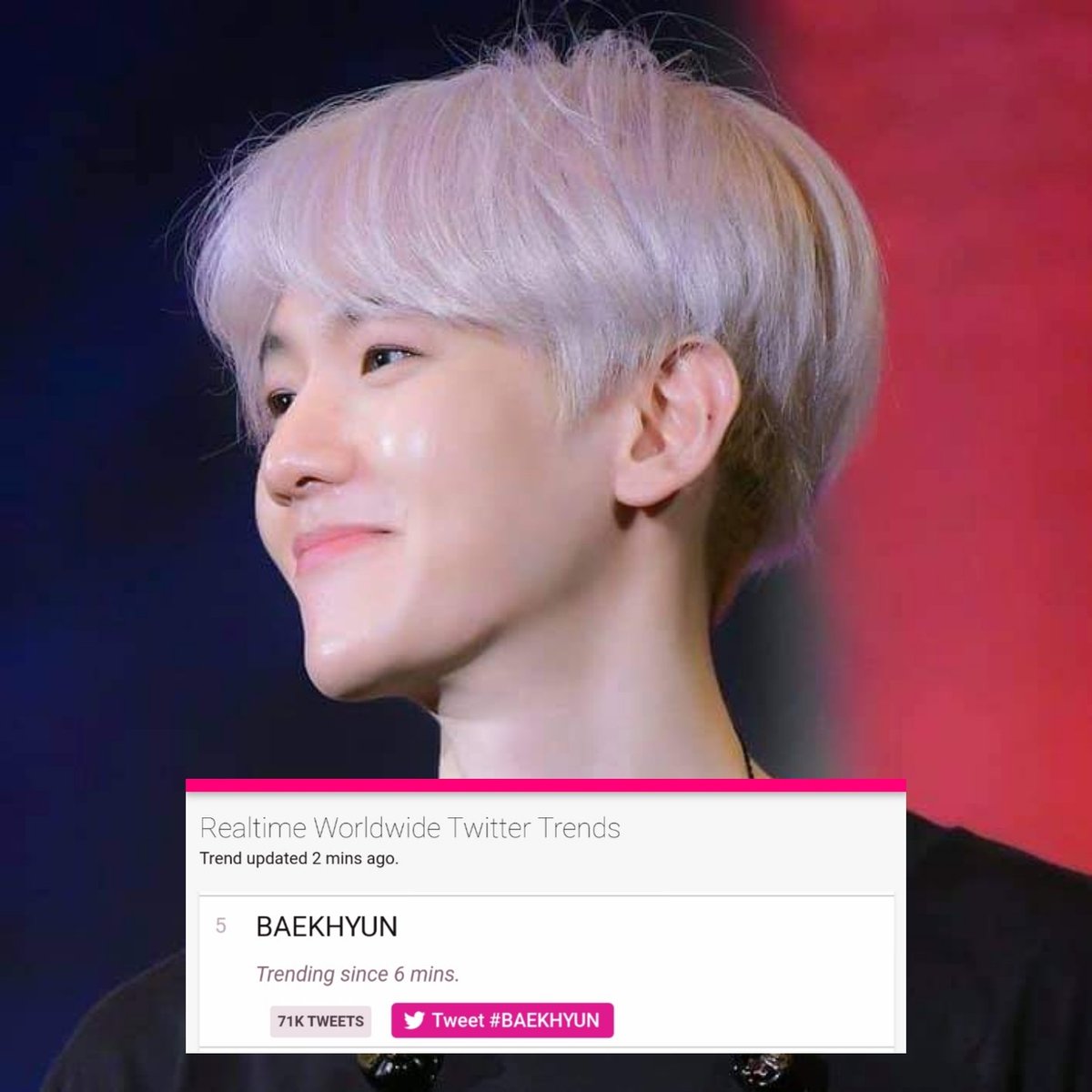 .@B_hundred_Hyun "BAEKHYUN" is trending Worldwide at #5