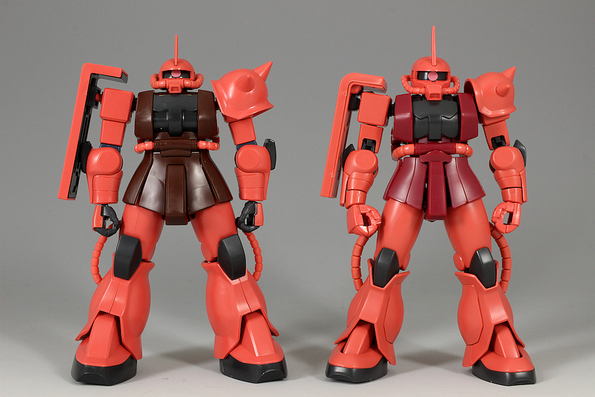 新旧HGUCシャアザクの頭と手を入れ替え よりアニメっぽい印象になったかな?