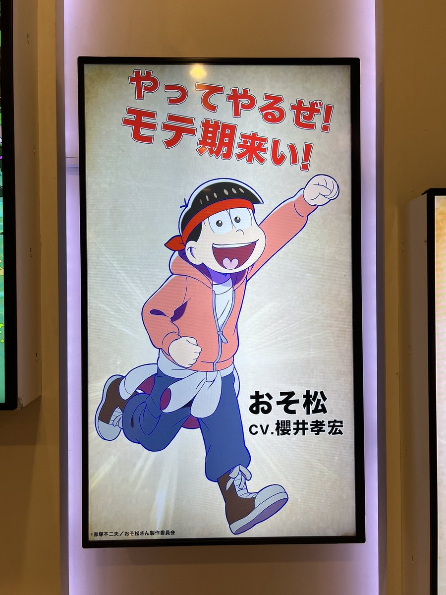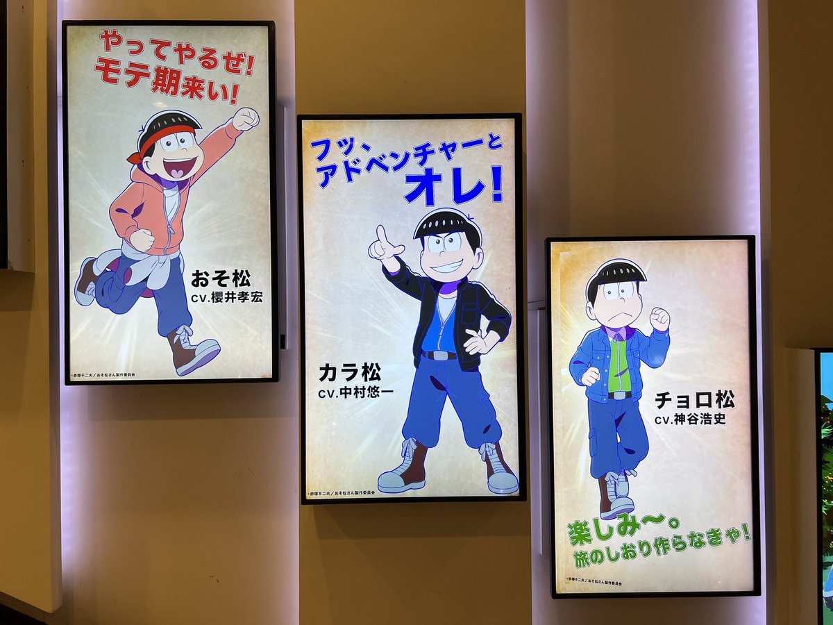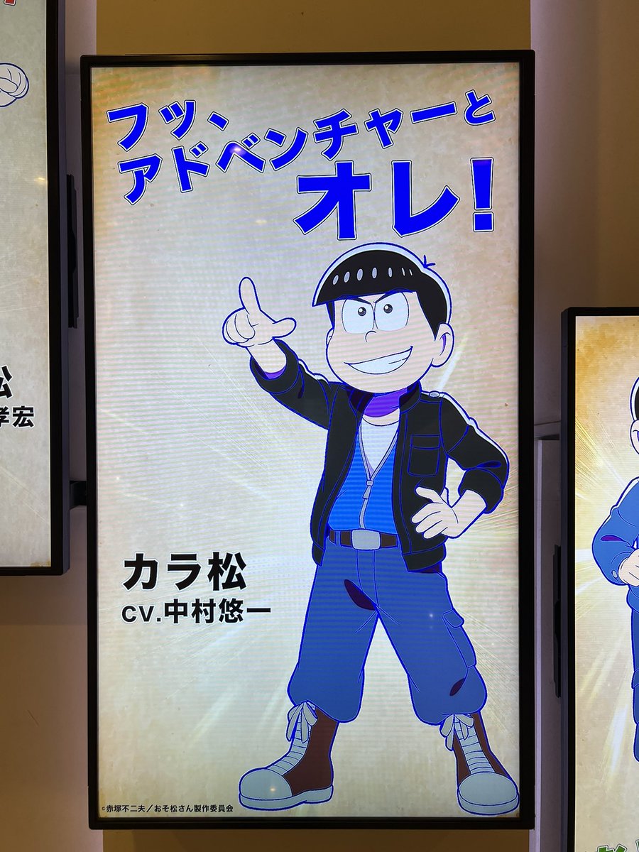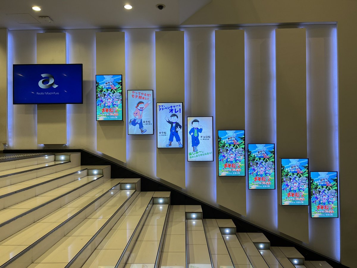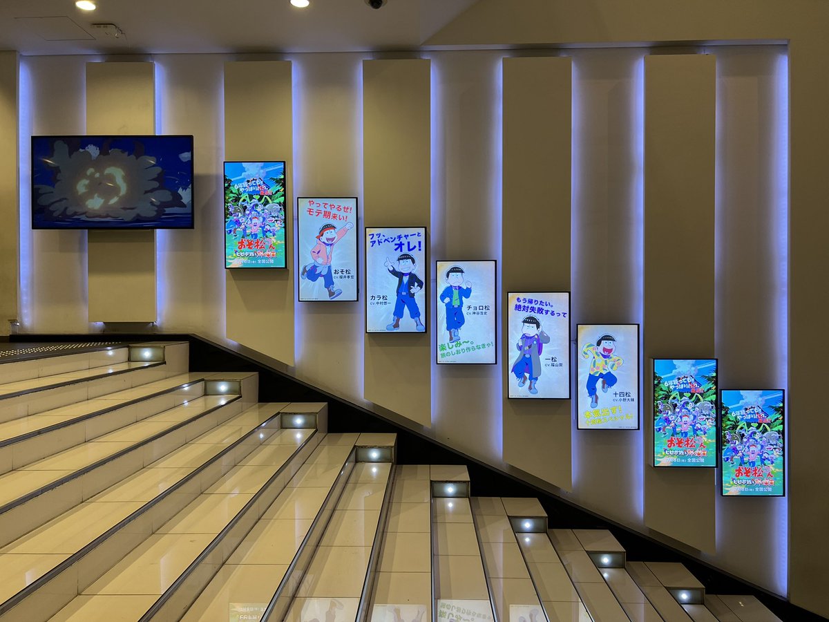 新宿ピカデリーのエントランスにあるデジタルサイネージに、『おそ松さん ~ヒピポ族と輝く果実~』が流れてました。