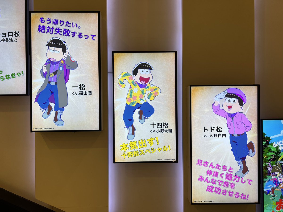 新宿ピカデリーのエントランスにあるデジタルサイネージで流れてる『おそ松さん ~ヒピポ族と輝く果実~』。