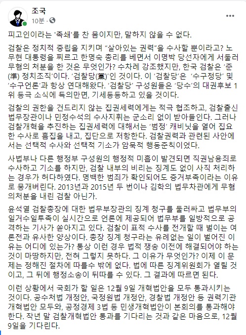 검찰은 대권을 꿈꾸는 총장의 사조직이 되었고, 검사는 사병(私兵)이 되었다. 현직이었다면 탄핵(검찰청법 제37조)되어 마땅한 제2의 국기문란 사건이다.