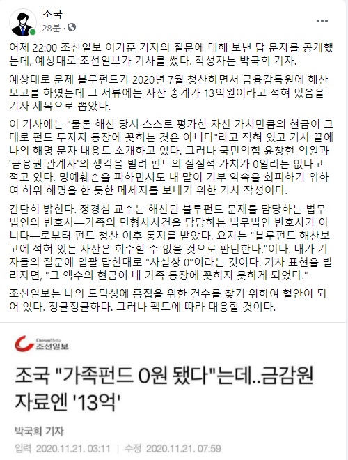 제 학문적 입장을 가장 정확히 정리한 기사 [시사인] 조국의 "하나하나 따박따박" 소송전 news.v.daum.net/v/202008171635…