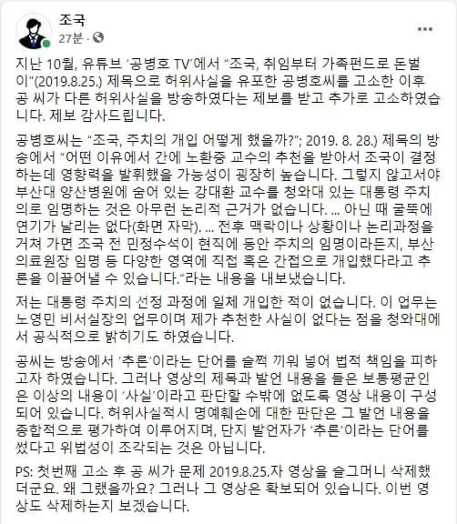 조국 "제 가족 모욕하고 조롱…법적 책임 묻겠다" youtu.be/xnHdG6koLYQ via @YouTube
