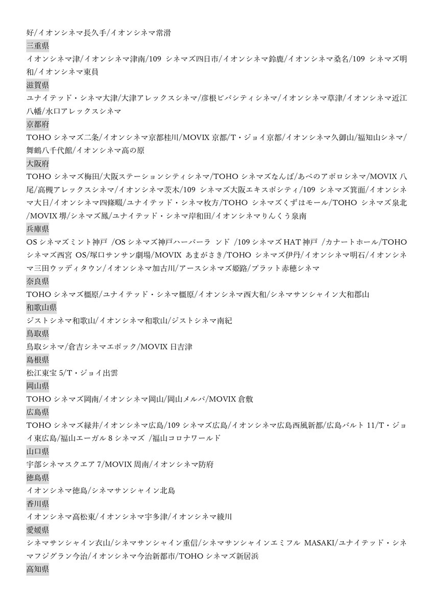 【ジブリ公開劇場一覧】画像にしました。山梨県以外は上映があるようです。「もののけ姫」「千と千尋の神隠し」「風の谷のナウシカ」「ゲド戦記」6月26日より全国372館の劇場で公開!theater.toho.co.jp/toho_theaterli…