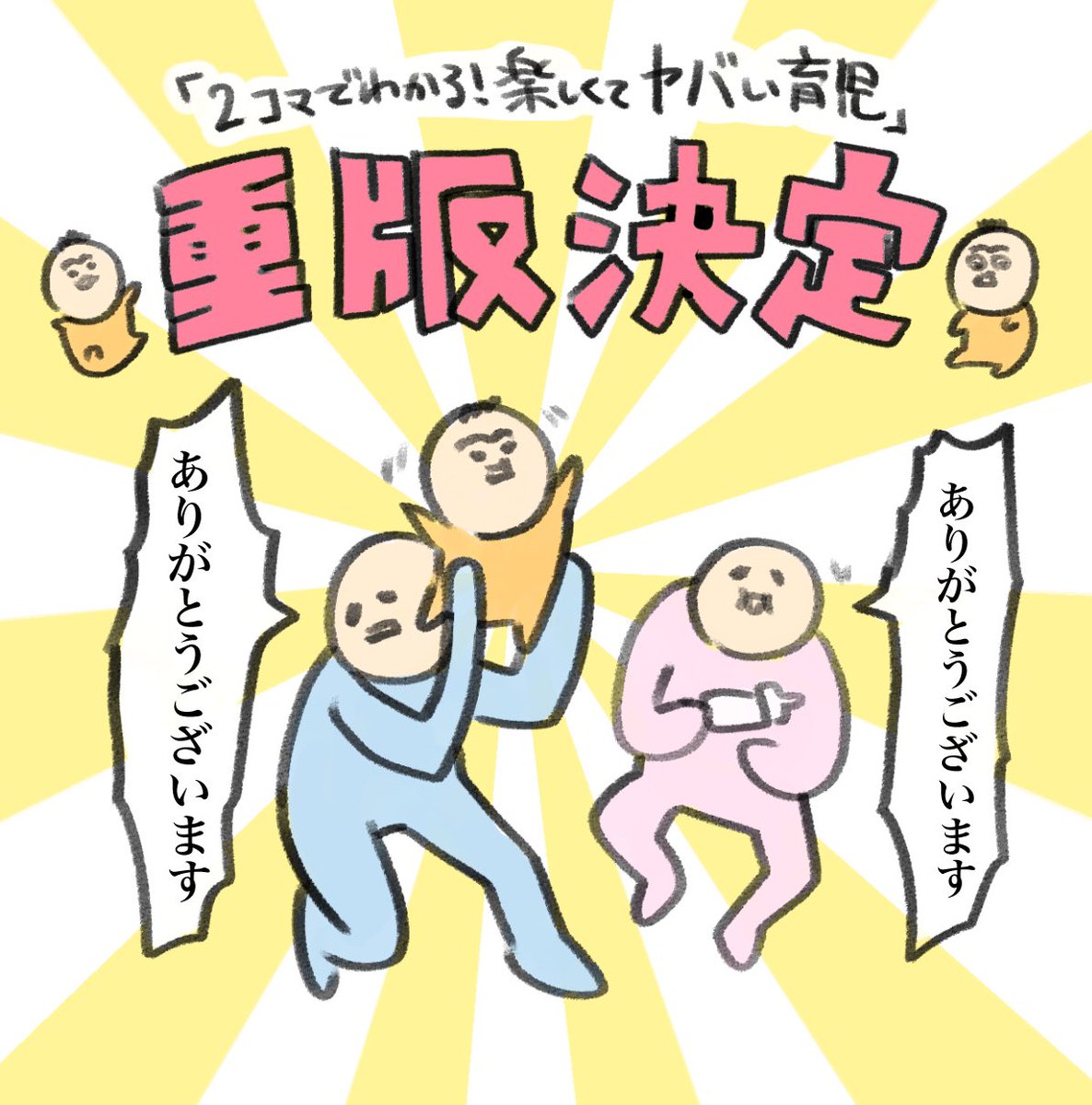 「2コマでわかる 楽しくてヤバい育児」おかげさまで重版決定いたしました!ありがとうございます!