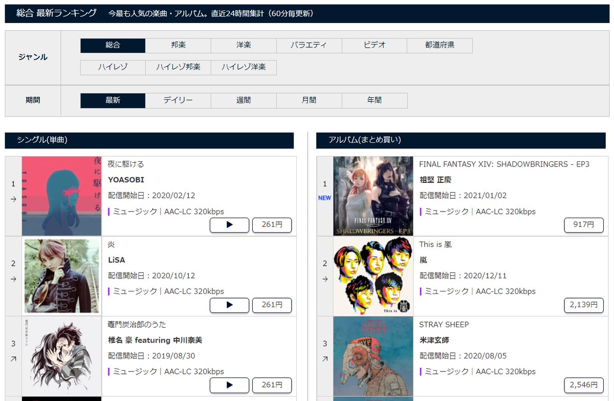 🥇iTunes トップアルバム(全体ランキング)