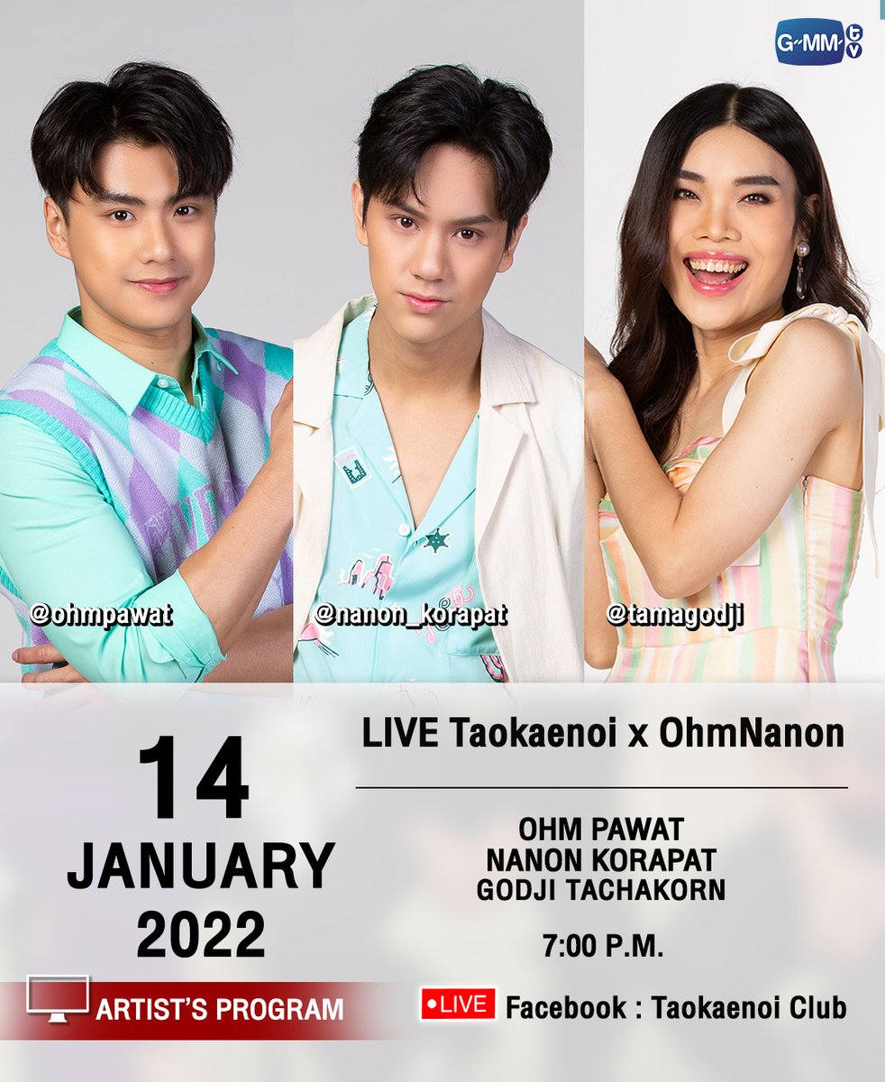 LIVE วันที่ 14 ม.ค. เวลา 19:00 น. ทาง Facebook Fanpage Taokaenoi Club